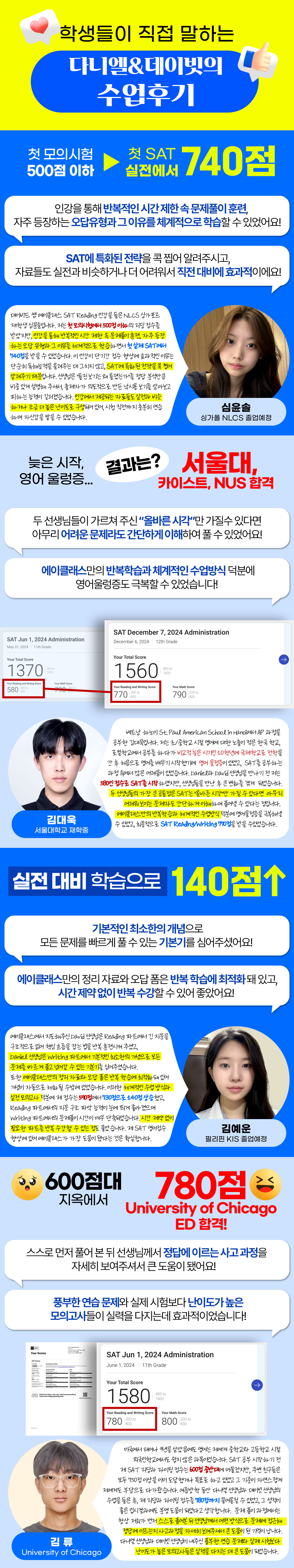 • 이 수업은 SAT시험 직전 대비용 문제풀이 수업 입니다.